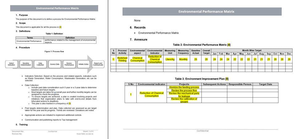 Environmental Performance Matrix provides a systematic framework for evaluating various environmental aspects and their corresponding performance indicators, facilitating informed decision-making and continual improvement initiatives.