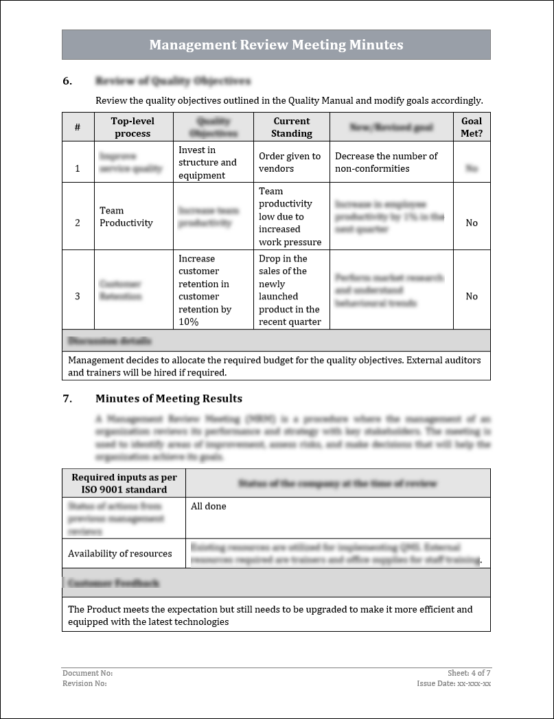 - This template is designed to help you effectively document and manage your organization's quality management system (QMS) review meetings.